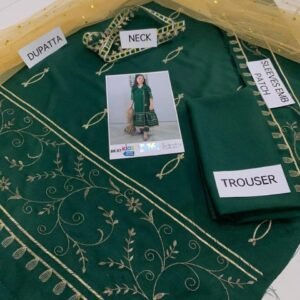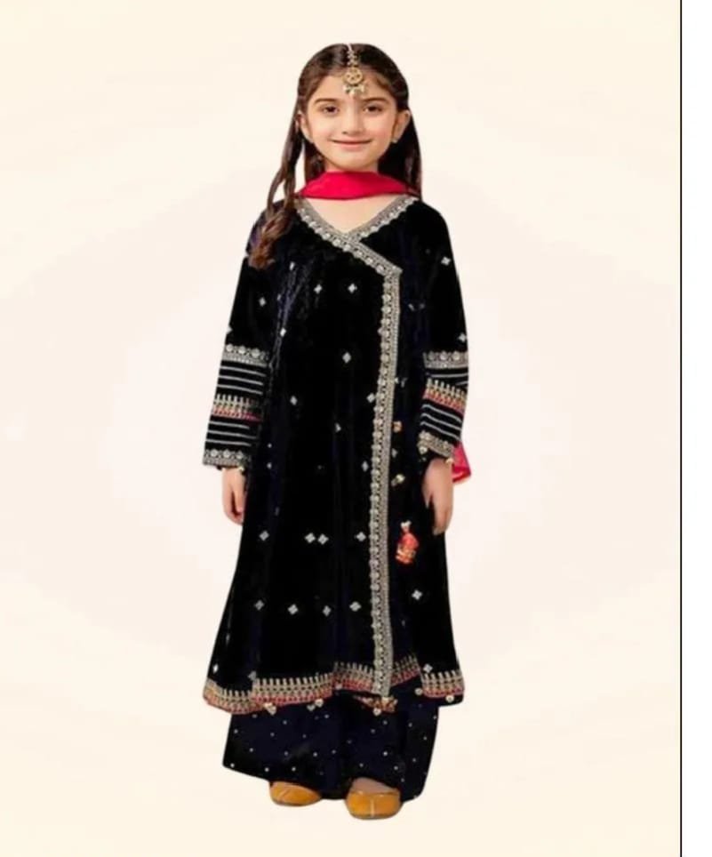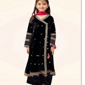Add timeless elegance to your child’s wardrobe with this Girls Embroidered 3 Piece Traditional Suit, designed to combine comfort, style, and cultural beauty. This stunning outfit comes in classic black and green shades, enhanced with delicate embroidery that gives it a premium festive look.